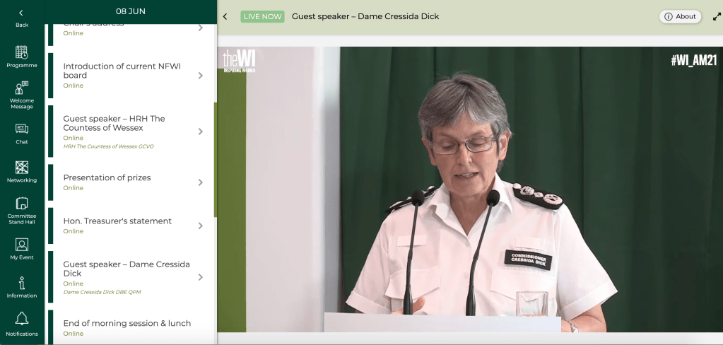 All the speakers for the event were together at The Royal Society of Arts in London including the NFWI board, Sophie the Countess of Wessex and Dame Cressida Dick. All socially distanced of course, and the speaker’s platform was sanitised in between each use.