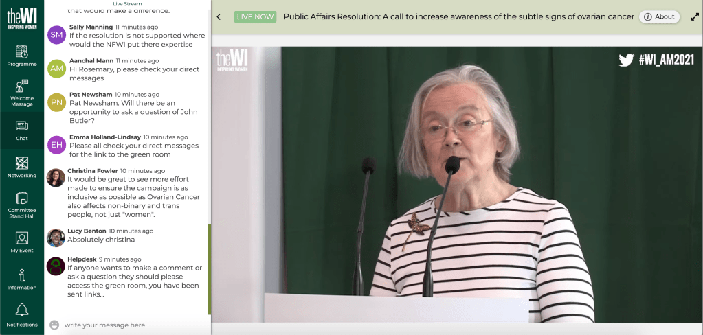 Once the two sides of the debate had been presented, anyone from the audience who wanted to give their perspective on the topic was able to speak. This year we could do this by leaving a message in a chat box and then being sent a link to a zoom call. Perhaps due to the technology, perhaps due to the increased number of steps in the process, or perhaps other reasons this year we only heard from one person. I know that in previous years this part would have been given a lot of time to hear from delegates from across the WI however, without seeing or hearing from each other so easily the volunteers to speak didn’t appear.